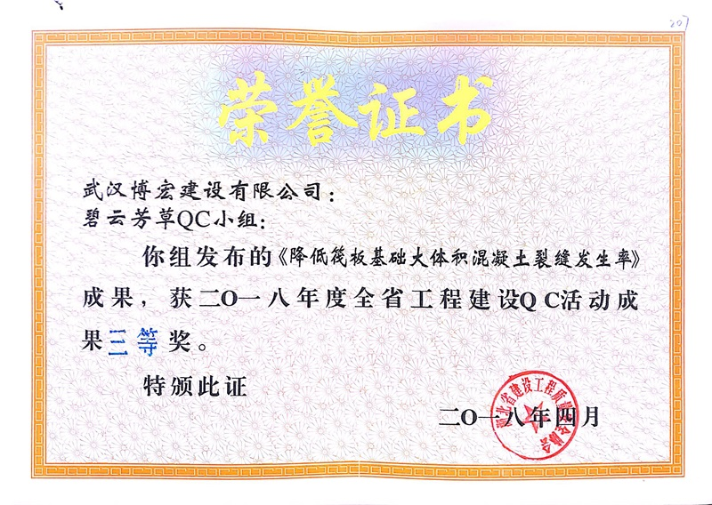 2018年度省建設(shè)QC活動成果三等獎(碧云芳草小組)