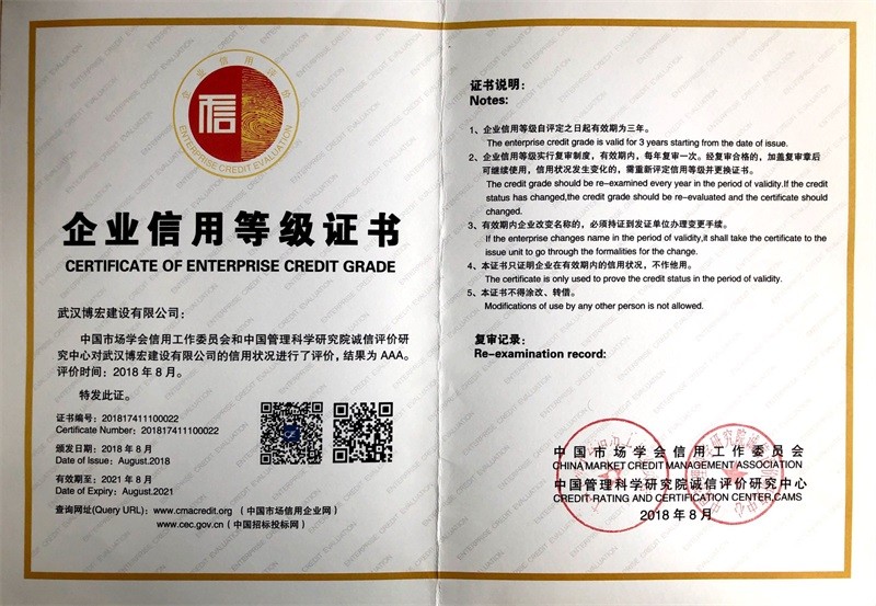 中國建筑協(xié)會3A信用等級證書(2019年1月)
