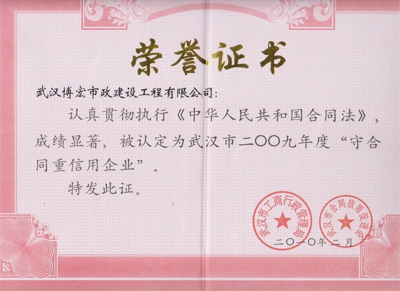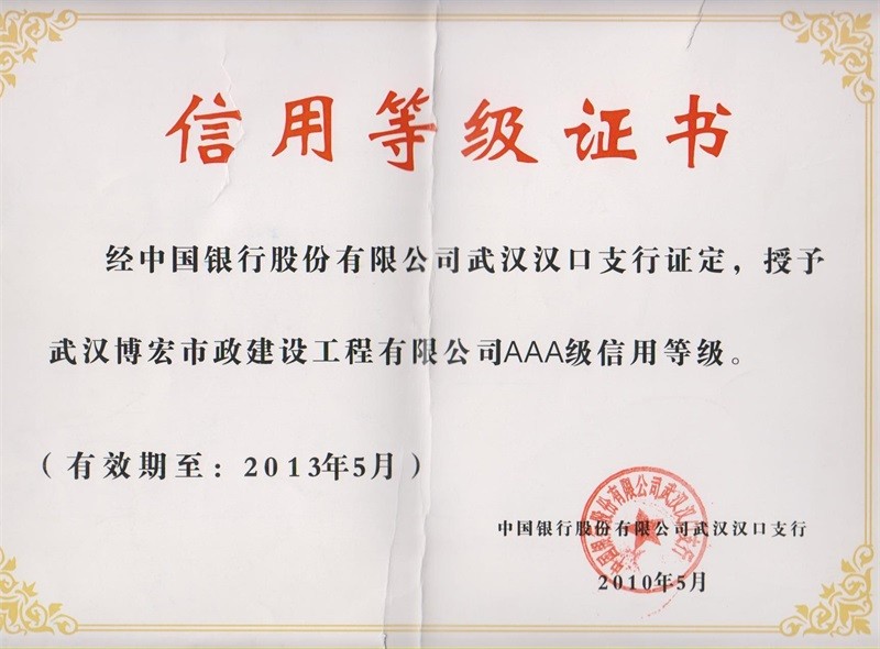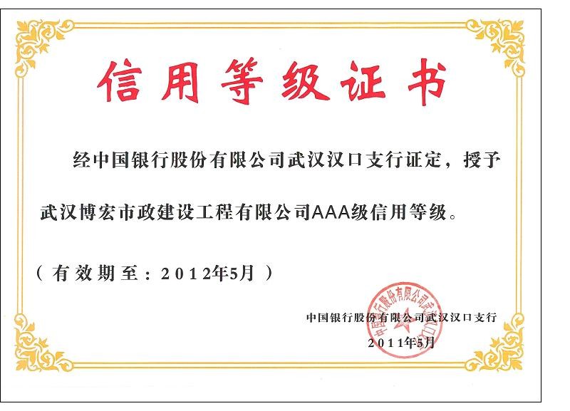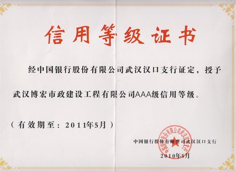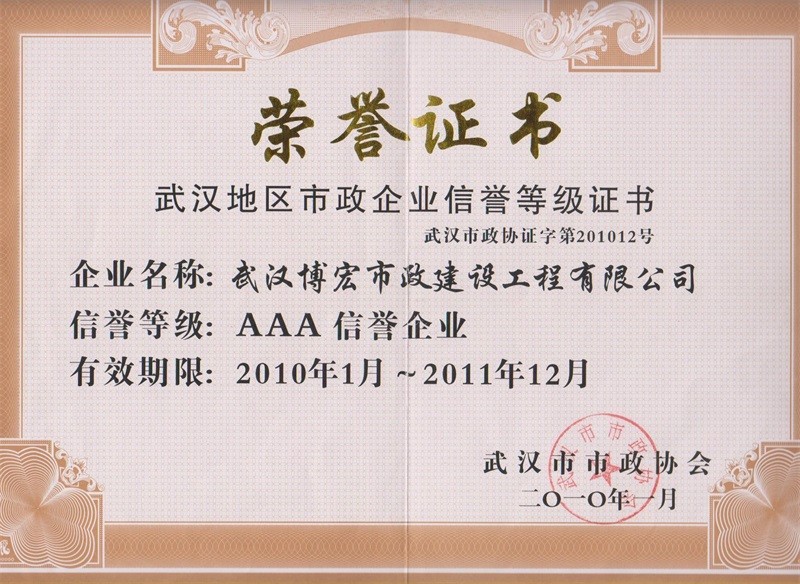 2010-2011年度武漢地區(qū)市政企業(yè)信譽(yù)等級證書