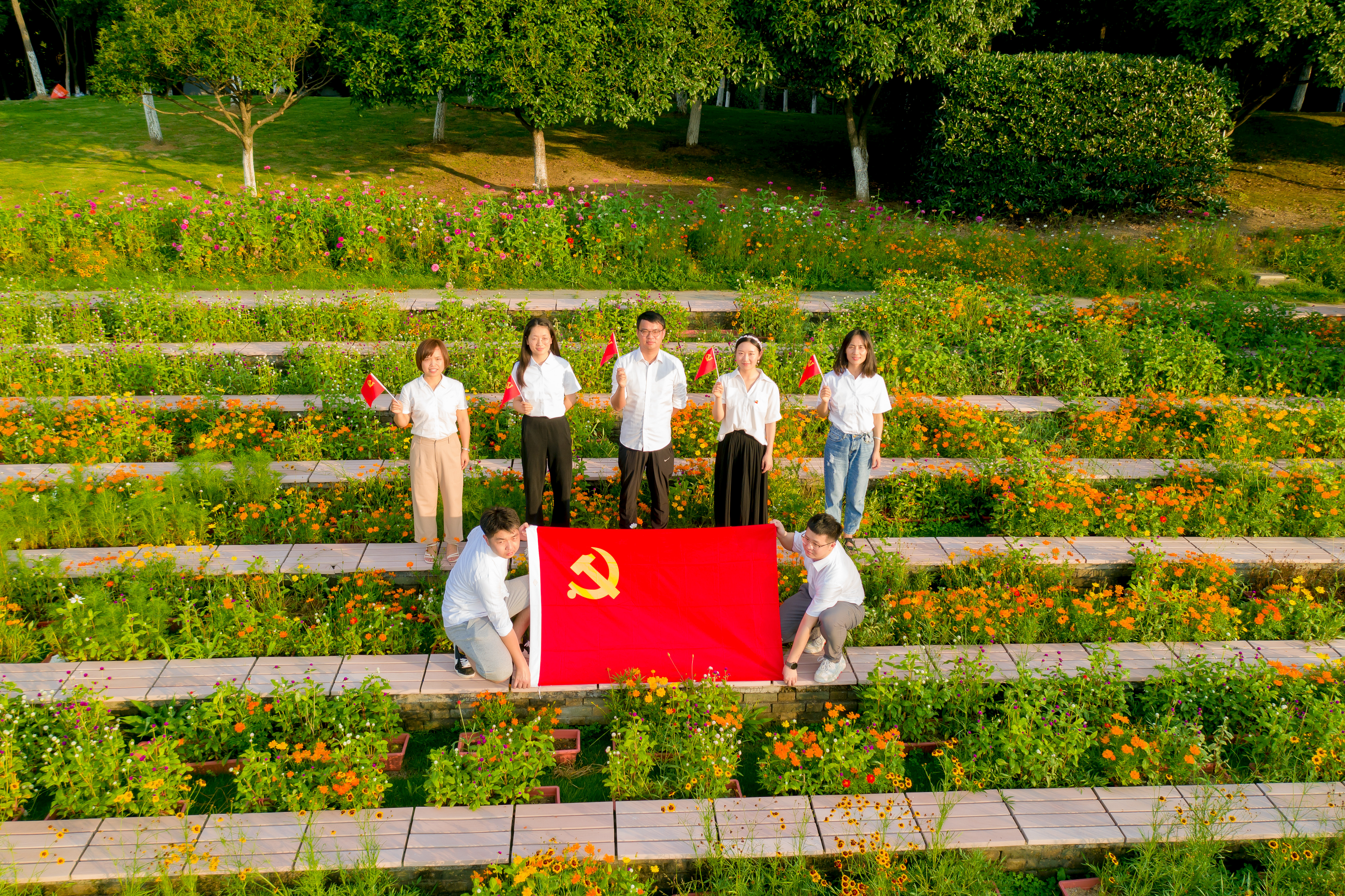 與黨旗同框