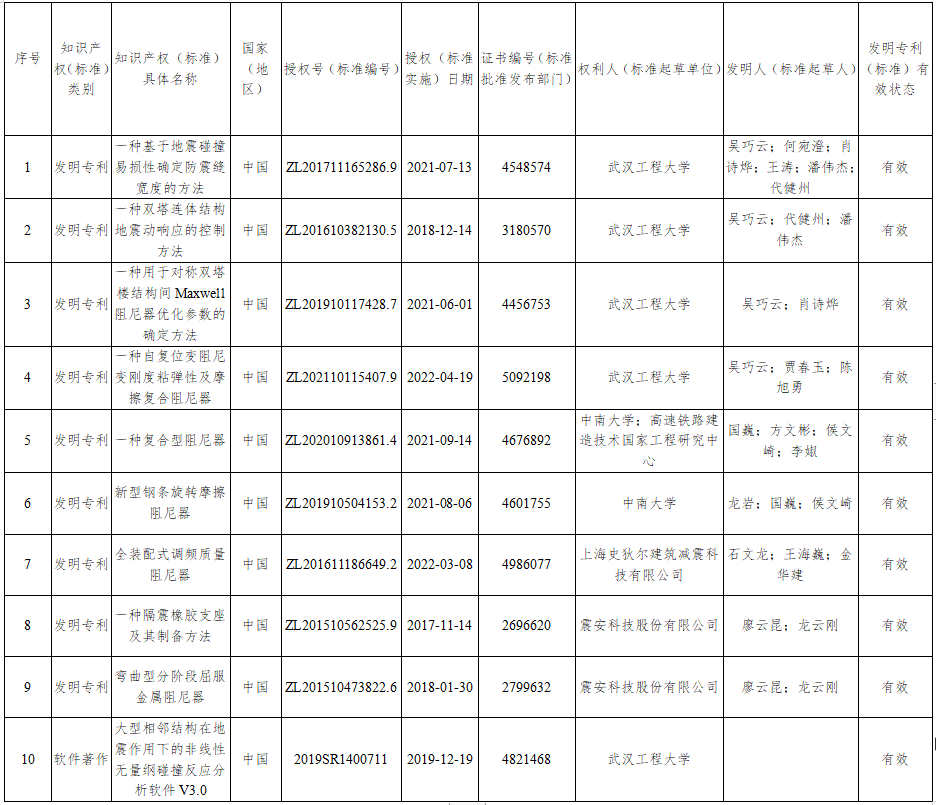 主要完成單位:武漢工程大學(xué)、中南建筑設(shè)計院股份有限公司、震安科技股份有限公司、上海史狄爾建筑減震科技有限公司、中南大學(xué)、武漢博宏建設(shè)集團有限公司、福州大學(xué)、湖南省建筑設(shè)計院集團股份有限公司、中信建筑設(shè)計研究總院有限公司、高速鐵路建造技術(shù)國家工程研究中心