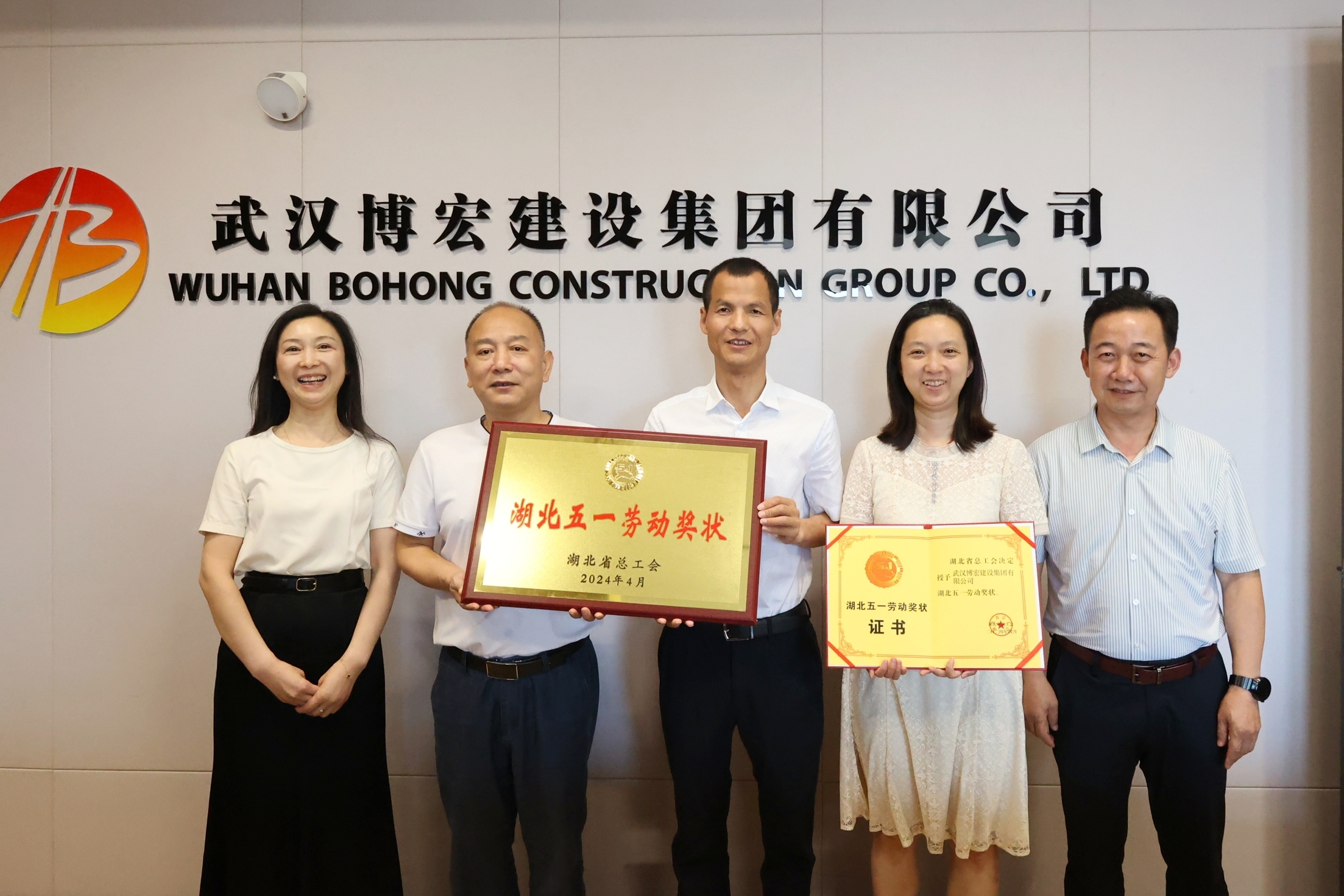 5月28日,武漢博宏建設(shè)集團(tuán)有限公司榮獲“湖北五一勞動(dòng)獎(jiǎng)狀”授牌儀式在公司30樓會(huì)議室舉行。漢陽(yáng)區(qū)總工會(huì)常務(wù)副主席李鐘為博宏建設(shè)集團(tuán)頒發(fā)“ 湖北五一勞動(dòng)獎(jiǎng)狀 ”獎(jiǎng)牌和證書。