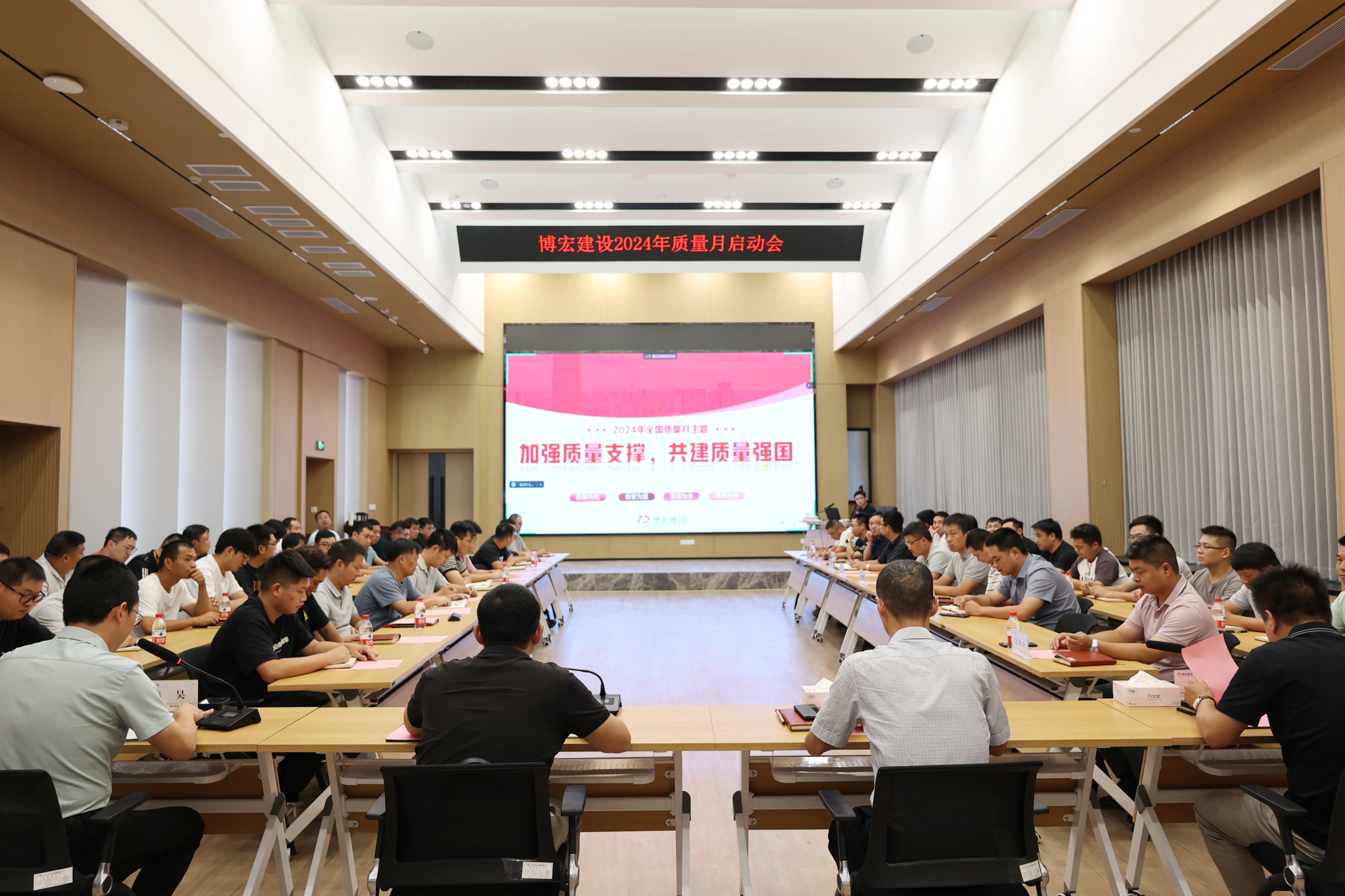 8月29日下午,博宏建設(shè)舉辦以“加強(qiáng)質(zhì)量支撐,共建質(zhì)量強(qiáng)國”為主題的2024年“質(zhì)量月”啟動會,黨委書記、董事長、總經(jīng)理鄒勇,總經(jīng)理助理李暉,市內(nèi)外各項目部負(fù)責(zé)人及質(zhì)量崗位人員90余人參與活動。會上,對“質(zhì)量月”的主題、方針、理念和口號進(jìn)行了深入宣貫,號召全體員工進(jìn)一步強(qiáng)化質(zhì)量意識,共同推動項目質(zhì)量提升。