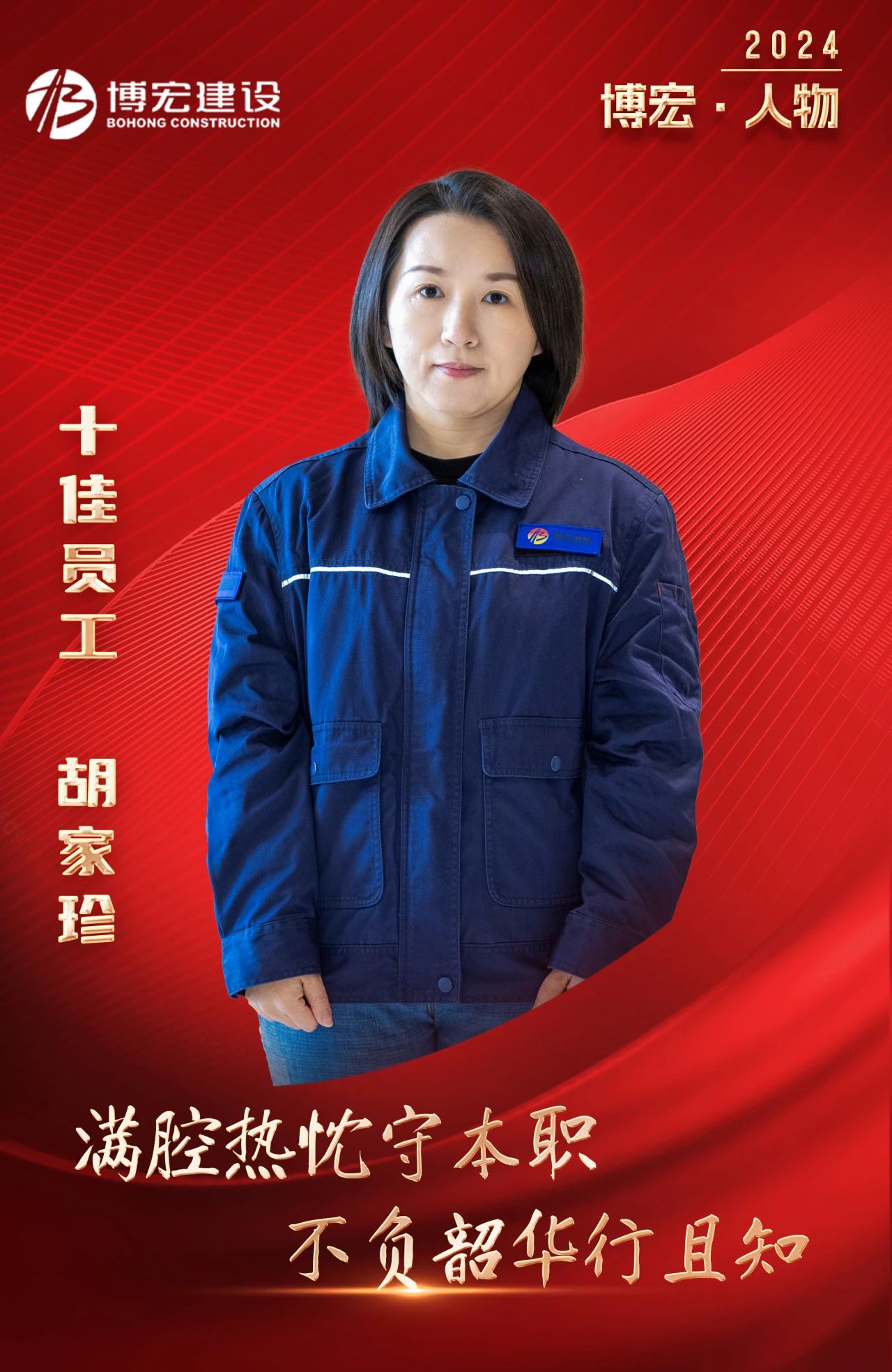 胡家珍,博宏建設集團五項目部資料主管,2019年3月入職博宏建設,先后參與建設武漢市第五醫(yī)院西院綜合大樓擴大片建設項目,新建居住、商業(yè)項目(月湖船院),新建居住、公共設施項目(新港臨江匯)(二標段)等多個項目。她個子不高,卻敢挑重擔,干凈利落的干事風格彰顯著她的豁達與干練,舉手投足間透露出自信灑脫,一絲不茍的工作態(tài)度讓她在一線發(fā)光發(fā)亮,入職博宏建設5年,連續(xù)獲得公司2020年度、2021年度、2022年度崗位能手,榮獲2023年度十佳員工,一項項榮譽是夢想照進現(xiàn)實的真實寫照,是默默堅守崗位接續(xù)奮斗的成果。