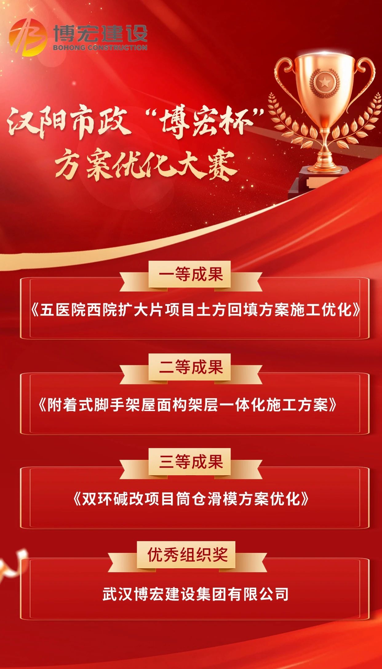 12月24日下午,漢陽市政“博宏杯”方案優(yōu)化大賽在漢陽市政建設(shè)大廈205會議室順利舉行,本次比賽以“技術(shù)賦能項(xiàng)目生產(chǎn)”為主題,經(jīng)過現(xiàn)場匯報(bào)評選,博宏建設(shè)集團(tuán)斬獲1項(xiàng)一等成果,1項(xiàng)二等成果,1項(xiàng)三等成果,與此同時(shí),公司獲評優(yōu)秀組織單位。
